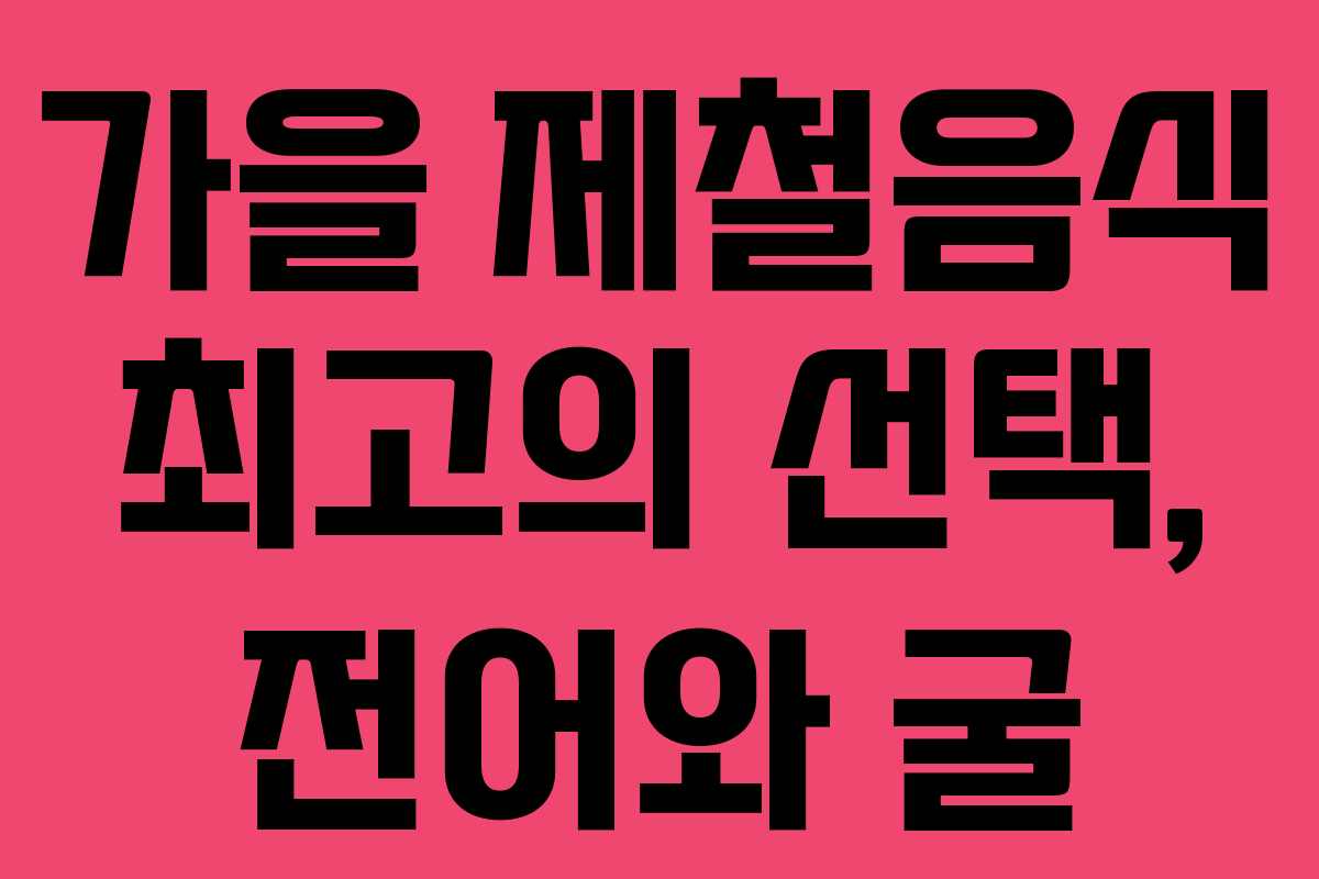 가을은 풍성한 수확의 계절로, 다양한 제철 식재료가 우리를 기다리고 있습니다. 이 시기에 맛있고 건강한 음식을 즐기는 것은 매우 중요합니다. 특히 가을 제철음식으로 추천할 만한 전어와 굴에 대해 알아보겠습니다.
