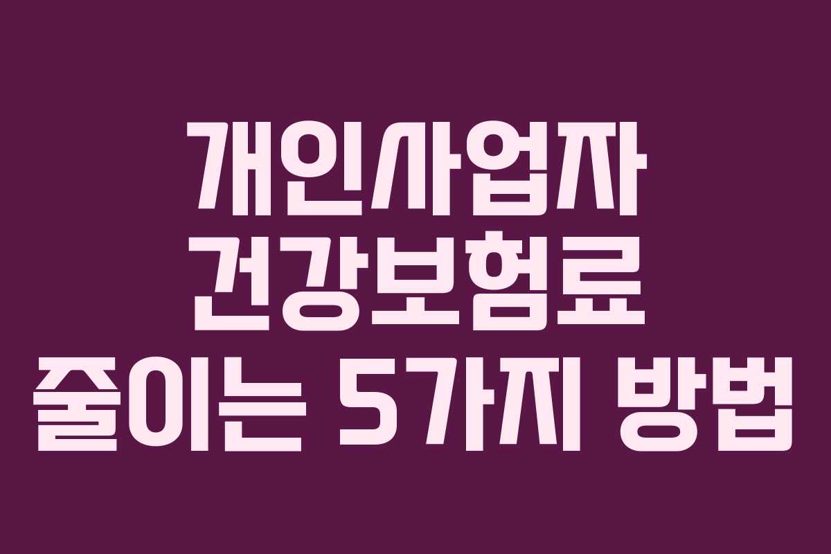 개인사업자는 건강보험료 부담이 크기 때문에 이를 줄이는 방법을 알아두는 것이 중요합니다. 여기서는 건강보험료를 합법적으로 줄일 수 있는 5가지 방법을 소개합니다.