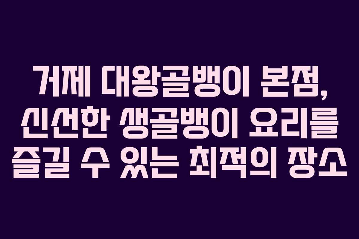 거제에서 특별한 생골뱅이 요리를 경험해보고 싶다면 대왕골뱅이 본점을 꼭 방문해보세요. 정성껏 준비된 요리와 친절한 서비스가 여러분을 기다리고 있습니다.