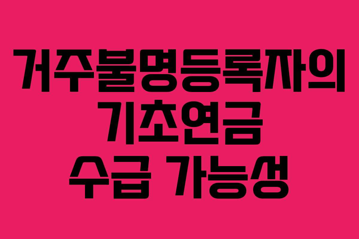 거주불명등록자도 기초연금을 받을 수 있습니다. 주민등록이 거주불명으로 되어 있어도 선정 기준에 적합하면 기초연금을 신청할 수 있으며, 신청일이 속한 달부터 수급이 가능합니다. 단, 수급자로 선정 후 소재가 확인되지 않으면 지급이 정지될 수 있습니다.