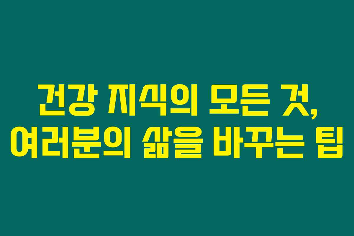 건강에 관심이 커진 요즘, 삶을 향상시키고 싶다면 아래 내용을 반드시 확인해보세요. 정확하고 유용한 건강 정보가 여러분의 라이프스타일을 한층 더 풍요롭게 만들어 줄 거예요.