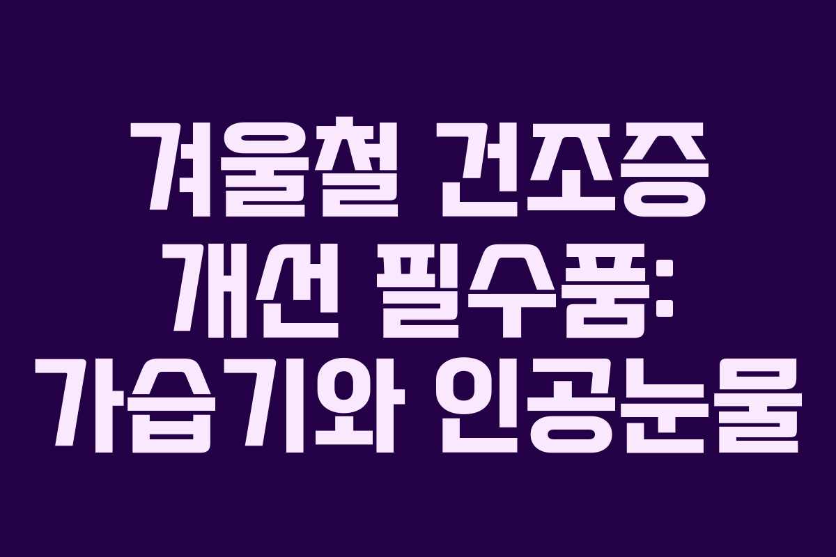 겨울철은 실내 환경이 건조해지기 쉬워 다양한 건조증을 유발할 수 있습니다. 이 시기에 가습기와 인공눈물이 도움이 될 수 있지만, 올바른 사용법을 알고 있어야 합니다.