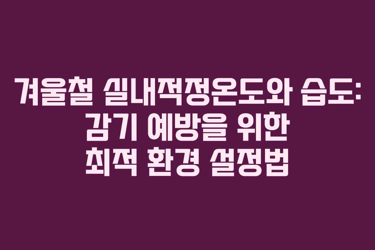 겨울철 실내에서 적정 온도와 습도를 유지하는 것은 건강에 매우 중요합니다. 많은 사람들이 보일러만 틀면 충분하다고 생각하지만, 실제로는 적정 습도가 필요합니다. 이 글에서는 겨울철 실내 적정 온도와 습도의 기준, 건강에 미치는 영향, 효과적인 관리 방법 등을 알아보겠습니다.