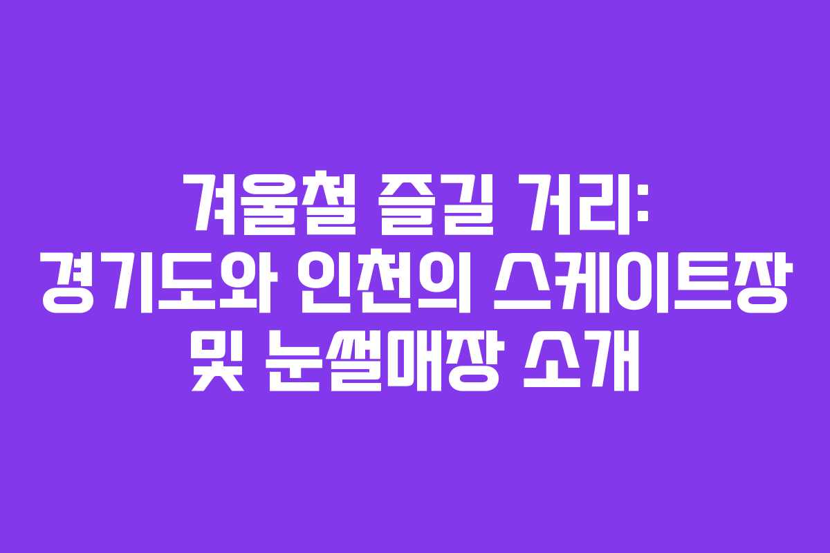 겨울이 다가오면 스케이트와 눈썰매와 같은 다양한 레포츠를 즐길 수 있는 좋은 기회입니다. 경기도와 인천 지역에서 추천하는 스케이트장과 눈썰매장을 소개합니다.