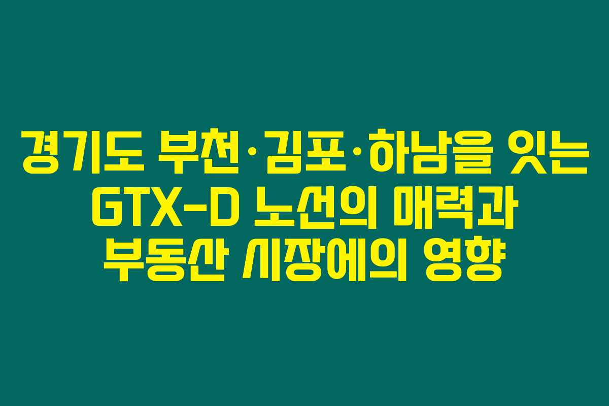 제가 알아본 바로는, 최근 경기도에서 추진 중인 GTX-D 노선이 지역 주민들에게 제공할 교통 편익과 부동산 시장에 미칠 긍정적인 효과에 대해 많은 기대가 모여 있습니다. GTX-D 노선은 부천과 김포, 하남을 걸쳐 도심과 외곽을 연결해 주는 중요 교통망으로 자리 잡을 가능성이 높습니다. 아래를 읽어보시면, GTX-D 노선의 구체적인 정보와 함께 부동산 시장에서의 영향력에 대해 자세히 알아보실 수 있을 것입니다.