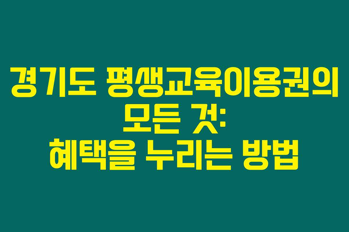 경기도 평생교육이용권의 모든 것: 혜택을 누리는 방법