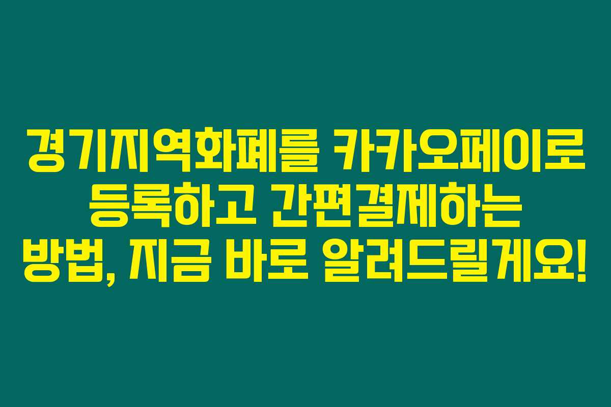 경기지역화폐를 위해 카카오페이를 이용해 결제하고 싶다면 이 정보를 꼭 주목하세요. 이렇게 간편하게 결제할 수 있는 방법을 궁금해하는 분들이 정말 많거든요. 특히 최근에 카카오페이로 경기지역화폐를 등록하는 과정이 간소화되었다고 하니, 놓치지 말고 지금 바로 확인해보세요!