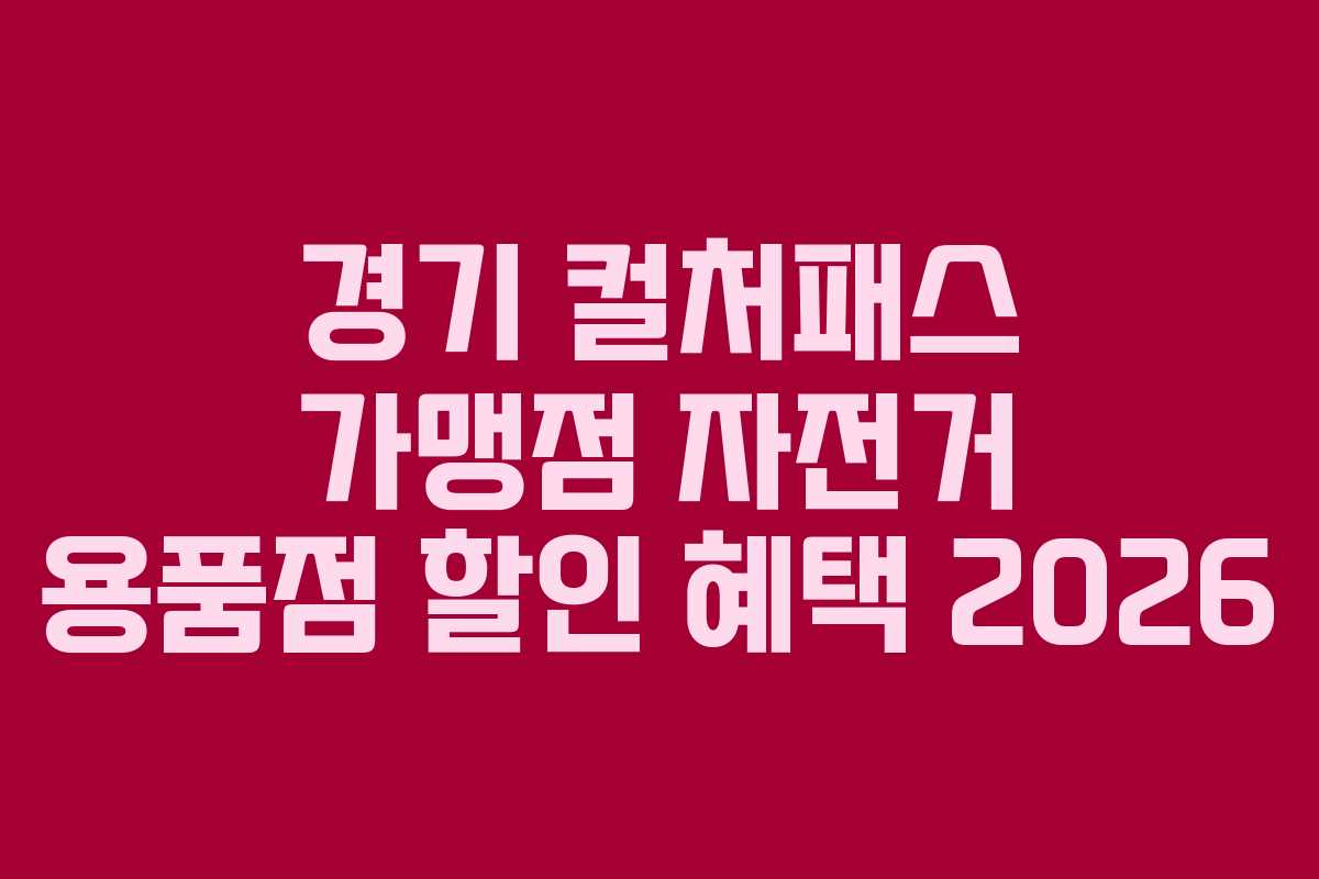 2026년, 자전거 용품을 구매할 때 경기 컬처패스 가맹점을 활용하면 어떤 혜택이 있을까요? 저는 최근 자전거에 대한 관심이 많아지면서 다양한 자전거 용품을 구매할 필요가 생겼습니다. 이 기회를 통해 경기 컬처패스 가맹점에서 제공하는 할인 혜택을 직접 체험해 보았습니다. 여러분과 함께 이 경험을 나누며, 2026년 현재 가맹점에서 어떤 혜택을 받을 수 있는지 상세히 살펴보겠습니다.
