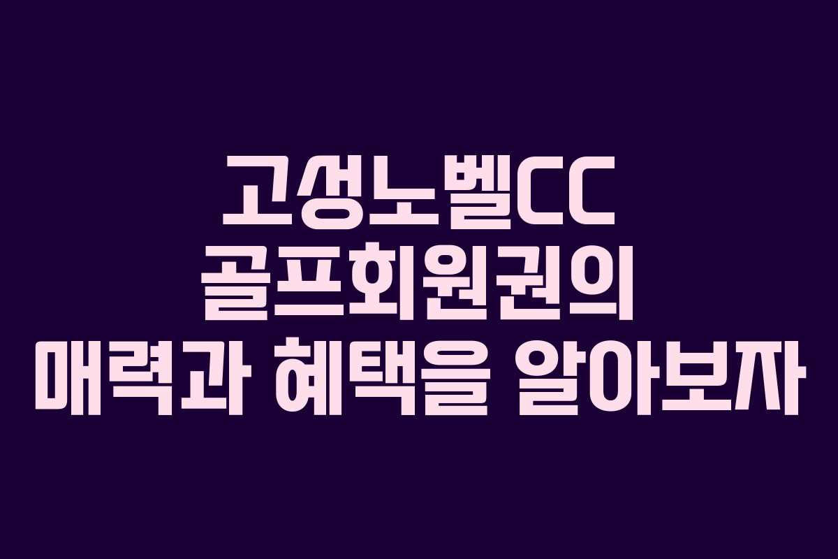 고성노벨CC는 경상남도 고성군에 위치한 회원제 골프장으로, 2010년에 개장하여 많은 골프 애호가들에게 사랑받고 있다. 이 골프장은 고급스러운 시설과 다양한 코스 설정으로 다양한 수준의 골퍼들에게 적합한 환경을 제공한다. 고성노벨CC의 회원권은 골프를 즐기는 사람들에게 많은 혜택을 제공하며, 이를 통해 더욱 특별한 경험을 누릴 수 있다.