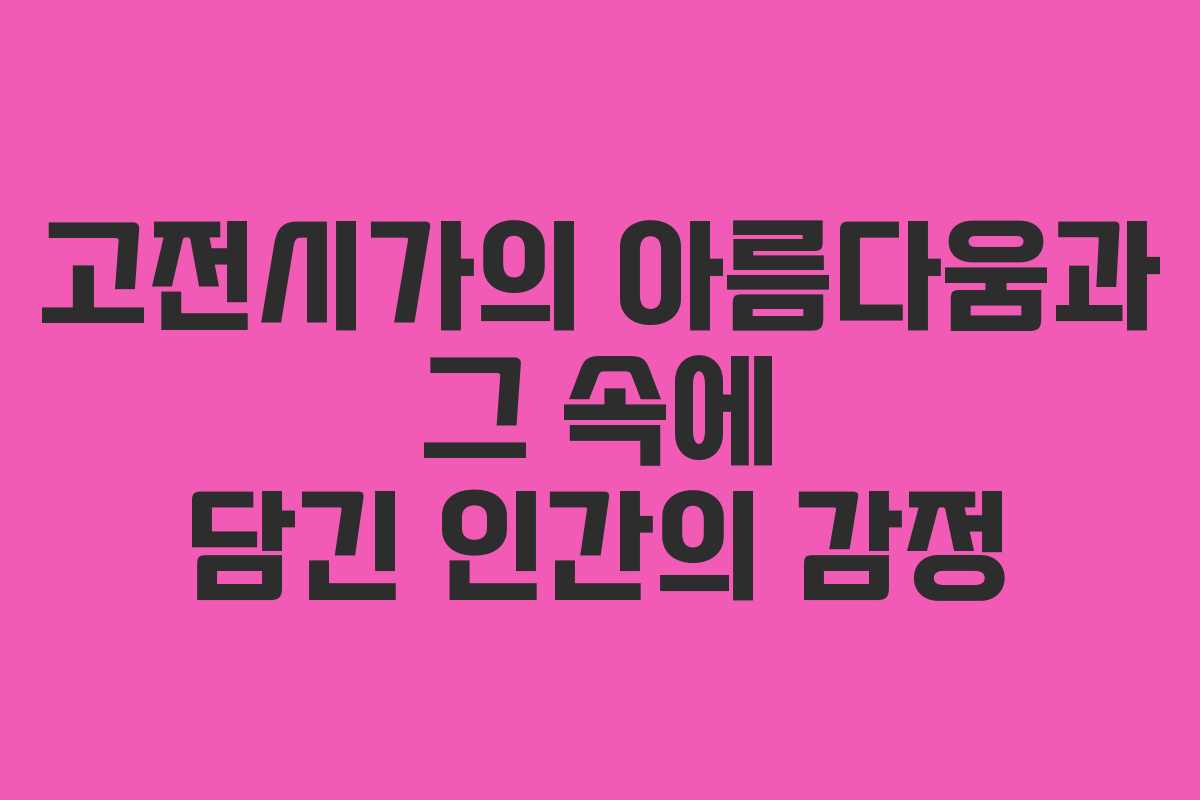 고전시가는 인간의 보편적인 감정을 다루므로, 현대인들도 그 속에서 위로와 공감을 찾을 수 있습니다. 각 작품을 통해 삶의 의미를 되새기고, 인간 존재의 본질에 대해 성찰하는 기회를 제공합니다.