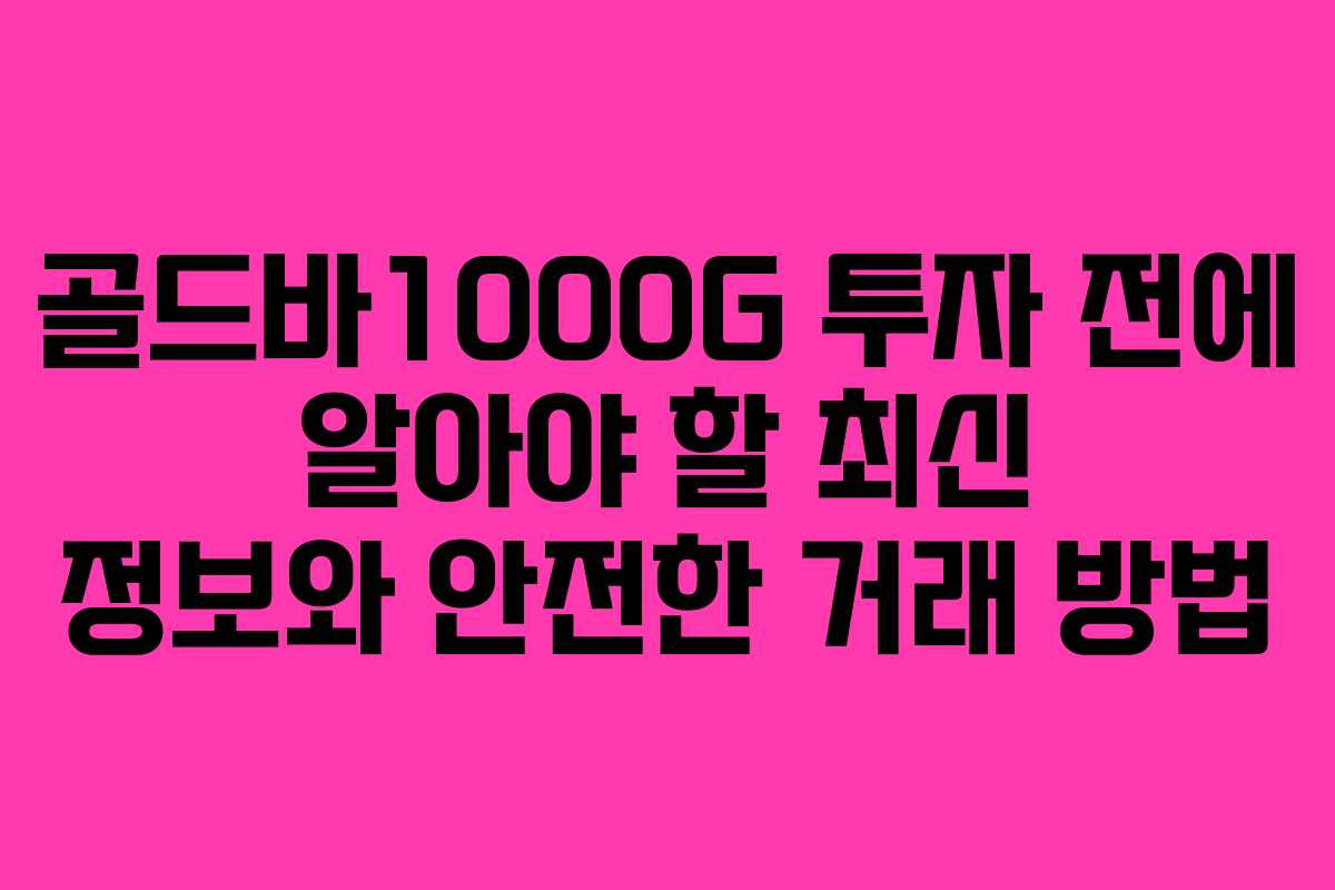 골드바1000G 투자에 앞서 반드시 확인해야 할 사항을 아래에 정리했습니다.