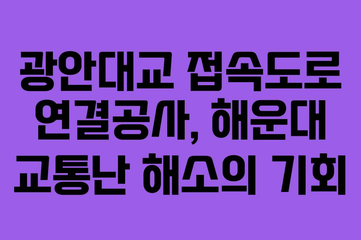 부산 해운대구의 교통 혼잡을 해소하기 위한 ‘광안대교 접속도로 연결공사’가 시작되었습니다. 이 공사는 센텀시티와 신시가지 일원의 교통 문제를 해결하기 위한 중요한 프로젝트입니다.
