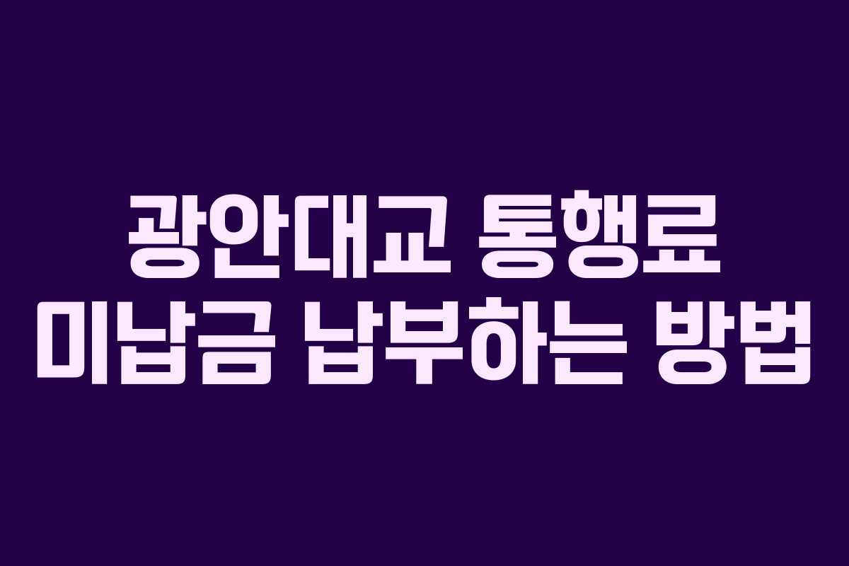 광안대교의 통행료 미납금 납부는 간단한 두 가지 방법으로 가능합니다. 미납 통행 요금을 제때 납부하지 않으면 불이익이 생길 수 있으니, 아래 방법을 통해 빠르게 해결하시기 바랍니다.