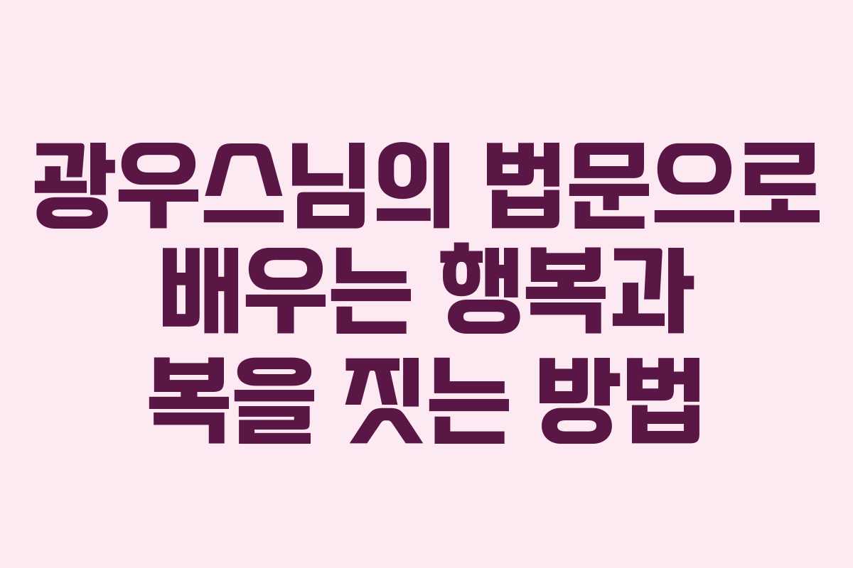 광우스님의 법문으로 배우는 행복과 복을 짓는 방법