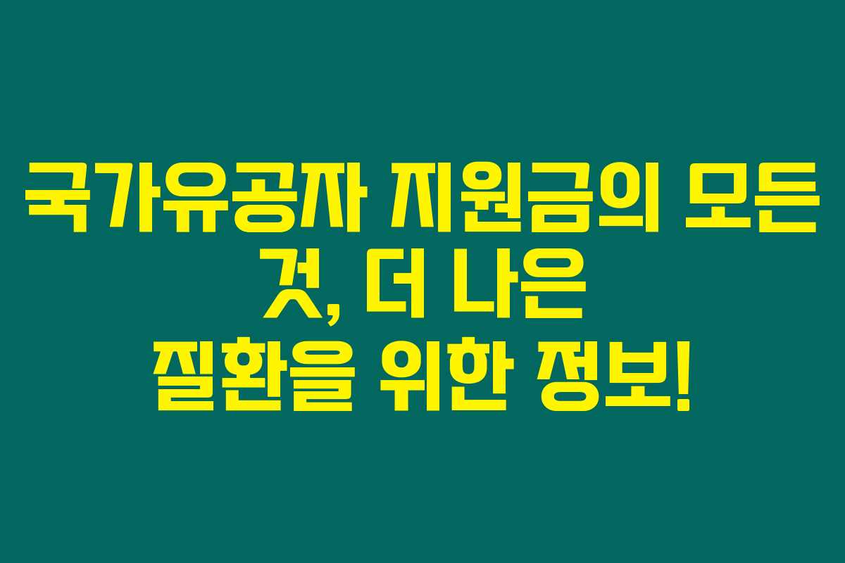 제가 알아본 바로는 국가유공자 지원금은 국가를 위해 헌신하신 분들에게 필요한 지원을 제공하는 중요한 제도입니다. 이를 통해 국가유공자와 그 가족들이 보다 안정적인 생활을 누리고, 의료비 및 생계에 대한 부담을 덜 수 있도록 도와주고 있습니다. 국가유공자 지원금을 통해 어떤 혜택을 받을 수 있는지, 아래를 읽어보시면 더욱 자세한 정보를 확인하실 수 있습니다.