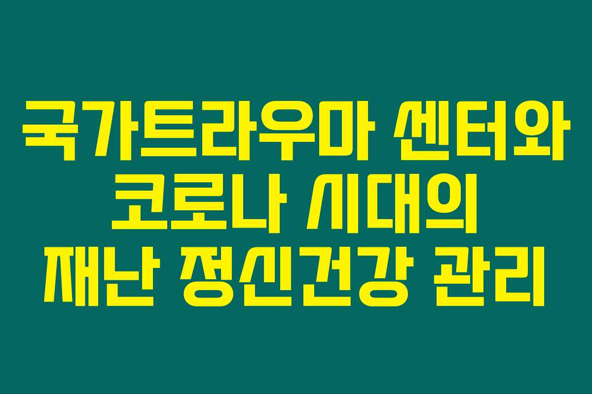 국가트라우마센터는 재난 경험자들의 심리를 지원하고 정신적 안정과 치료 프로그램을 제공합니다.