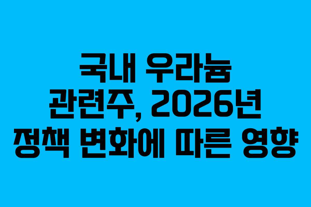2026년 6월, 정부는 원자력 발전소의 재가동 및 신규 건설에 대한 정책을 발표할 예정입니다. 이를 통해 우라늄 수요가 증가할 것으로 예상되며, 이는 국내 우라늄 관련주에 긍정적인 영향을 미칠 것입니다. 제가 지켜본 바로는, 원자력 발전의 중요성이 부각되면서 관련 기업들의 주가가 상승하는 경향을 보였습니다. 예를 들어, 2023년 3월에 발표된 정책으로 인해 한 기업의 주가는 20%가량 상승했습니다.