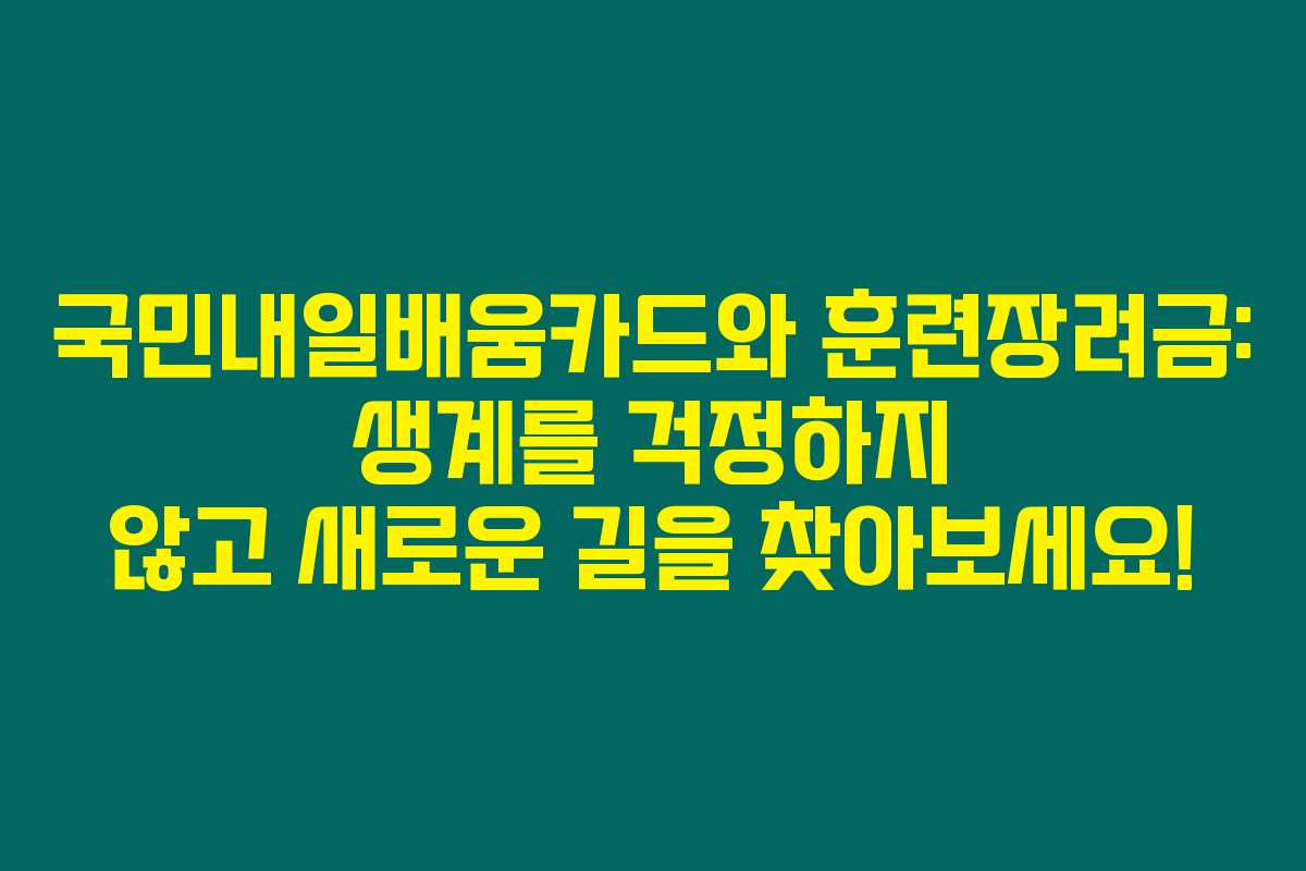 국민내일배움카드로 직업 능력 개발과 훈련을 고려하고 있다면 주목하세요. “직업훈련생계비로 생계를 걱정하는 분들이라면, 이 정보를 꼭 확인해보셔야 합니다.” 아래를 읽어보시면 훈련장려금과 직업훈련생계비에 대한 필수 정보를 확인할 수 있어요.