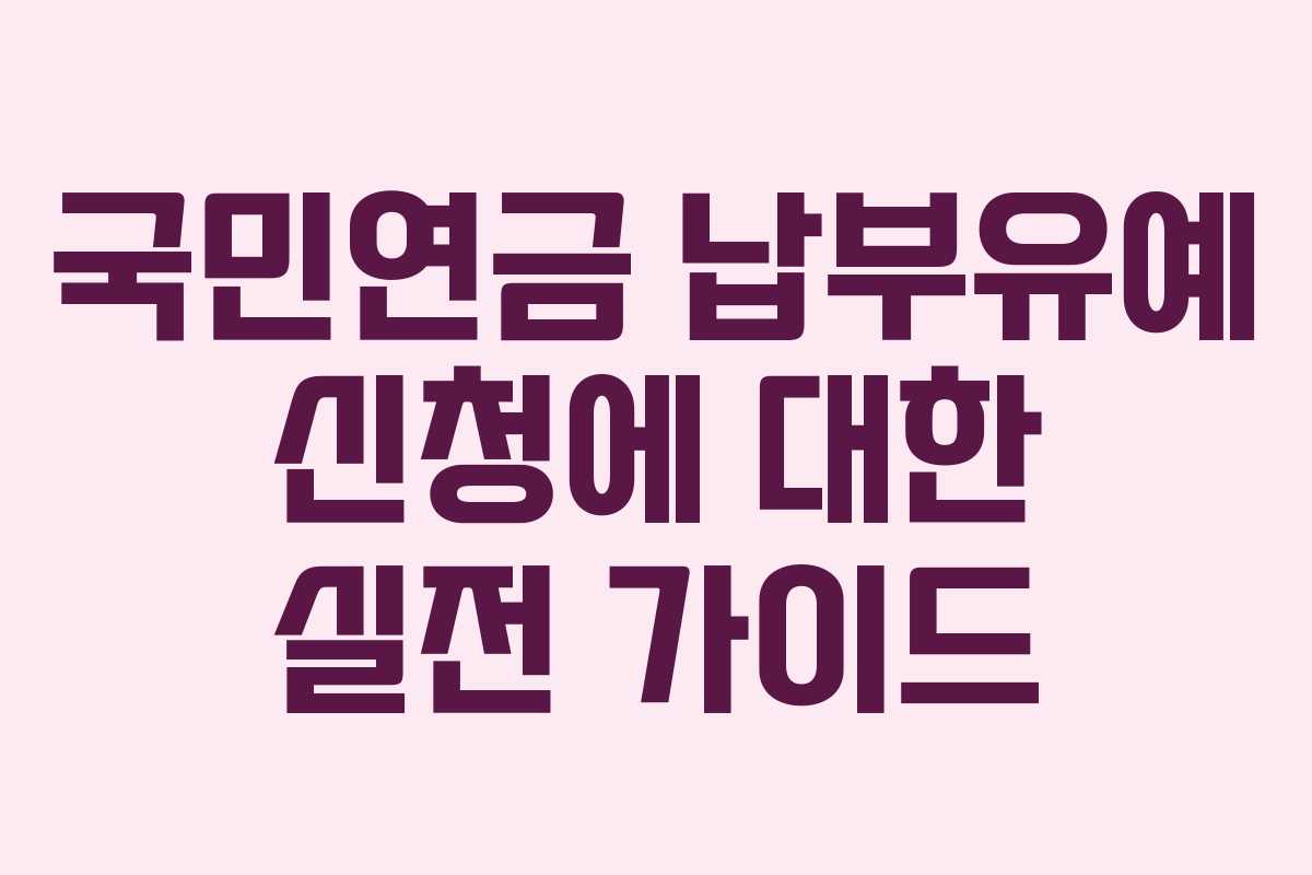 국민연금 납부유예 신청 방법 및 구체적인 절차