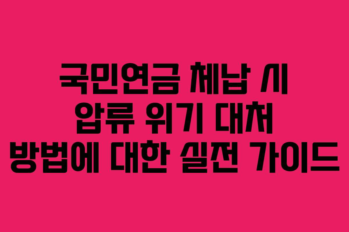 국민연금 체납 시 압류 위기 대처 방법에 대한 실전 가이드