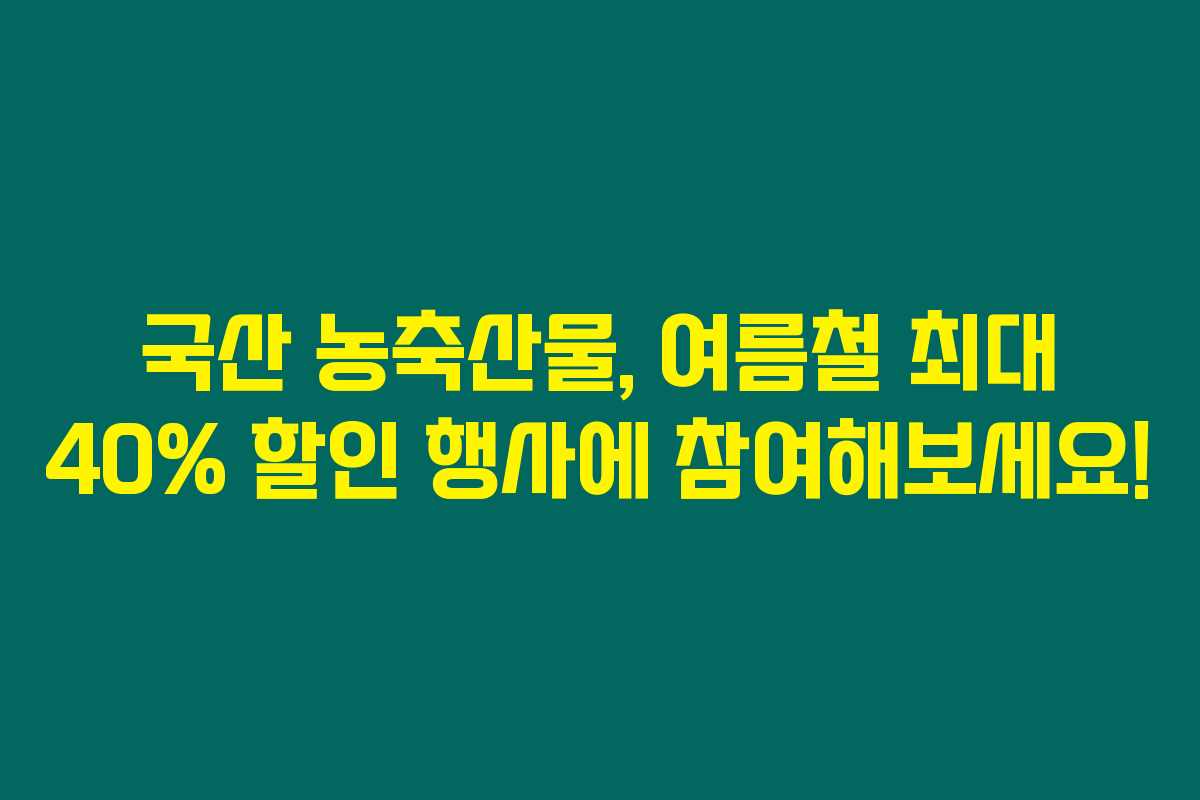 여름이 다가오면서 가정의 식비가 걱정이신가요? 오는 17일부터 내달 6일까지 진행되는 국산 농축산물 할인 행사에 참여하시면 최대 40% 할인된 가격으로 품질 좋은 농산물과 축산물을 만나볼 수 있어요. 아래를 읽어보시면 소비자들에게 주어지는 다양한 혜택에 대해 자세히 알아보실 수 있습니다.