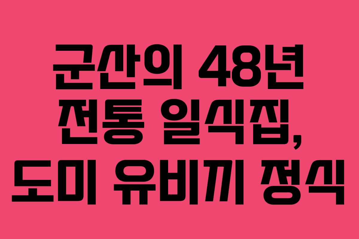 전현무계획3 방송에서 소개된 군산의 도미 유비끼는 48년의 전통을 자랑하는 일식집으로, 일본 정통식 초밥과 유비끼를 맛볼 수 있는 곳입니다. 이 글에서는 해당 맛집의 위치, 메뉴, 가격 정보 등을 알아보겠습니다.