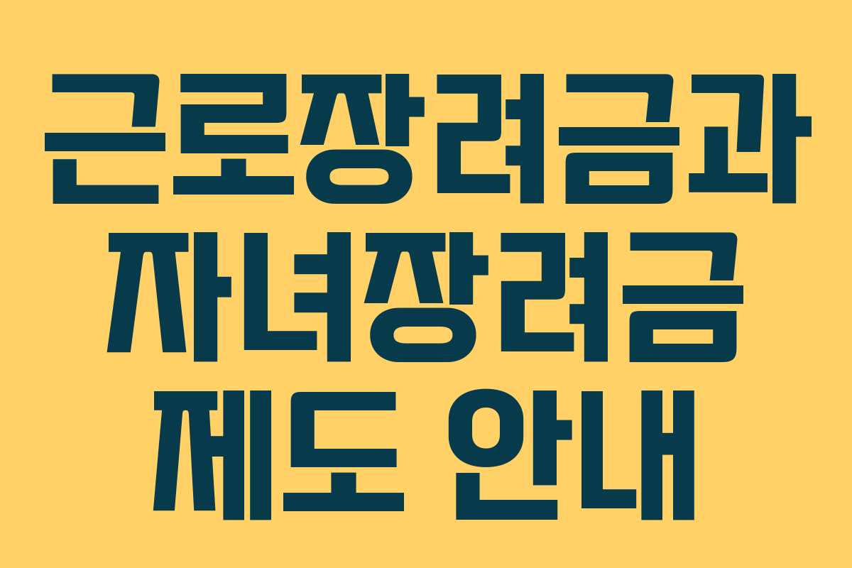 근로장려금은 근로소득을 기반으로 지급되는 반면, 자녀장려금은 부양자녀 수에 따라 지급됩니다.