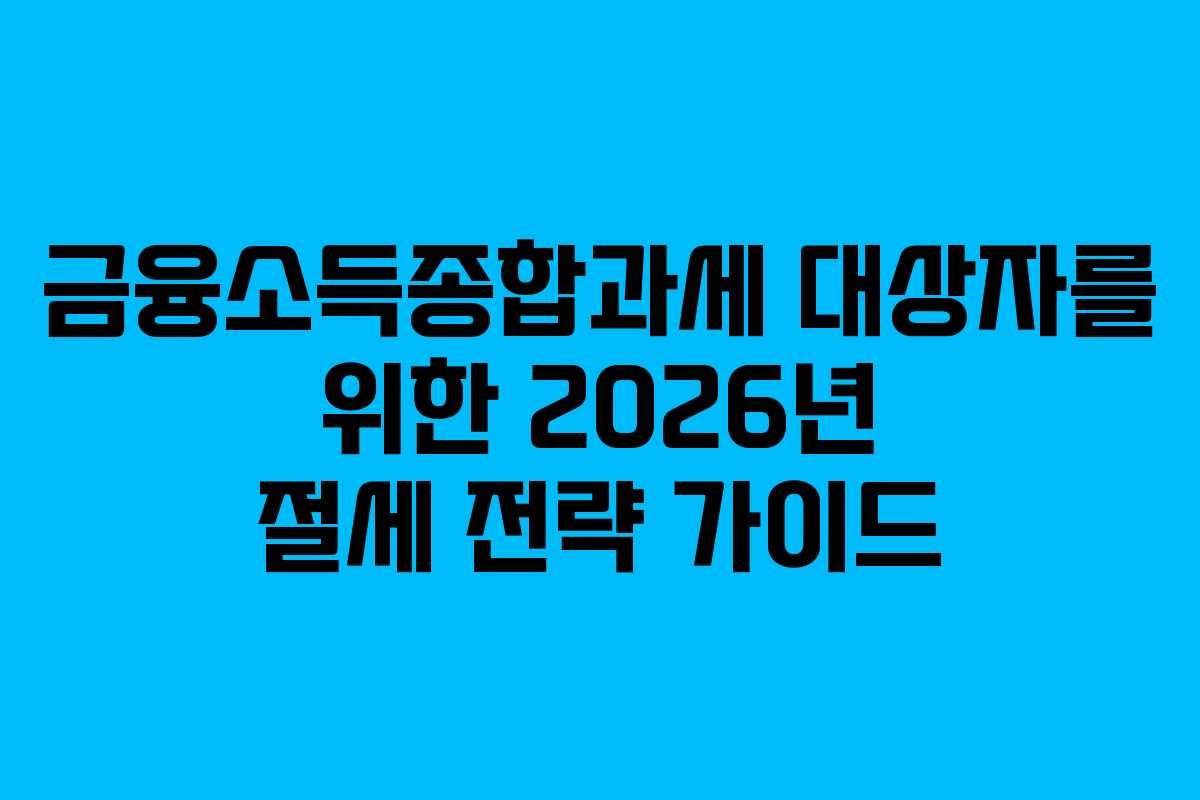 - 2026년 금융소득종합과세 대상자를 위한 구체적인 절세 전략