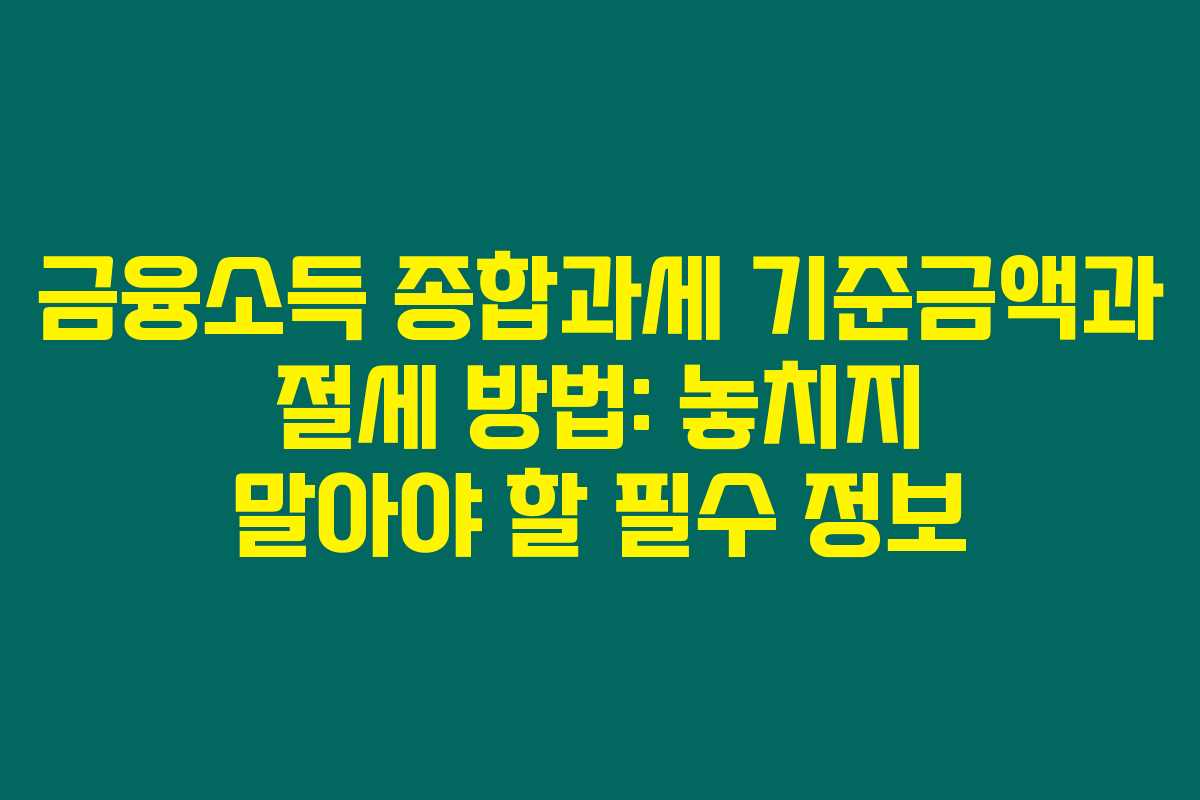 제가 직접 리서치한 바로는, 최근 금융소득 종합과세에 대한 관심이 급증하고 있습니다. 이 글을 통해 금융소득 종합과세 기준금액과 관련된 세부적인 사항, 절세 방법에 대해 알아보겠습니다. 금융소득이 증가함에 따라 이와 관련된 세금 관리의 필요성도 더욱 커지고 있다는 점을 강조하고 싶습니다. 아래를 읽어보시면 2023년 금융소득 종합과세에 대한 정확한 지식과 절세 팁을 확인하실 수 있습니다.