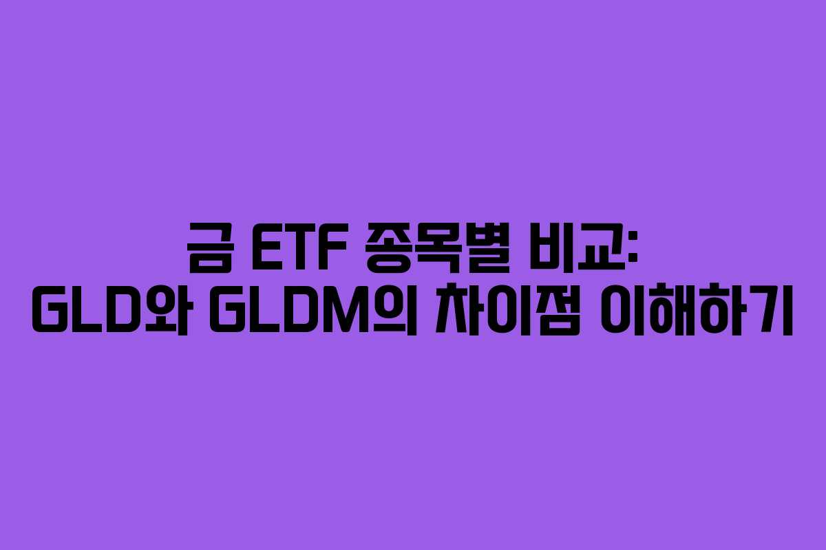 금에 투자하고자 하는 많은 이들이 GLD와 GLDM 두 종목 간의 차이를 고민합니다. 이 두 ETF는 실물 금을 기반으로 하여 가격이 유사하게 움직이지만, 특징과 장단점이 뚜렷합니다. 본 글에서는 2026년 기준으로 두 ETF의 주요 차이를 정리하고, 투자 결정을 돕기 위한 정보를 제공하겠습니다.