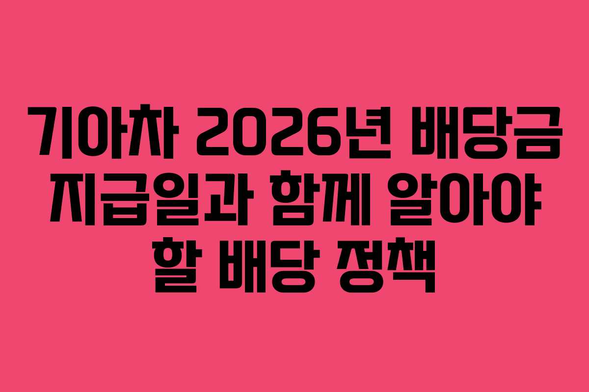 2026년 기아차 배당금 지급일 및 주요 변경사항