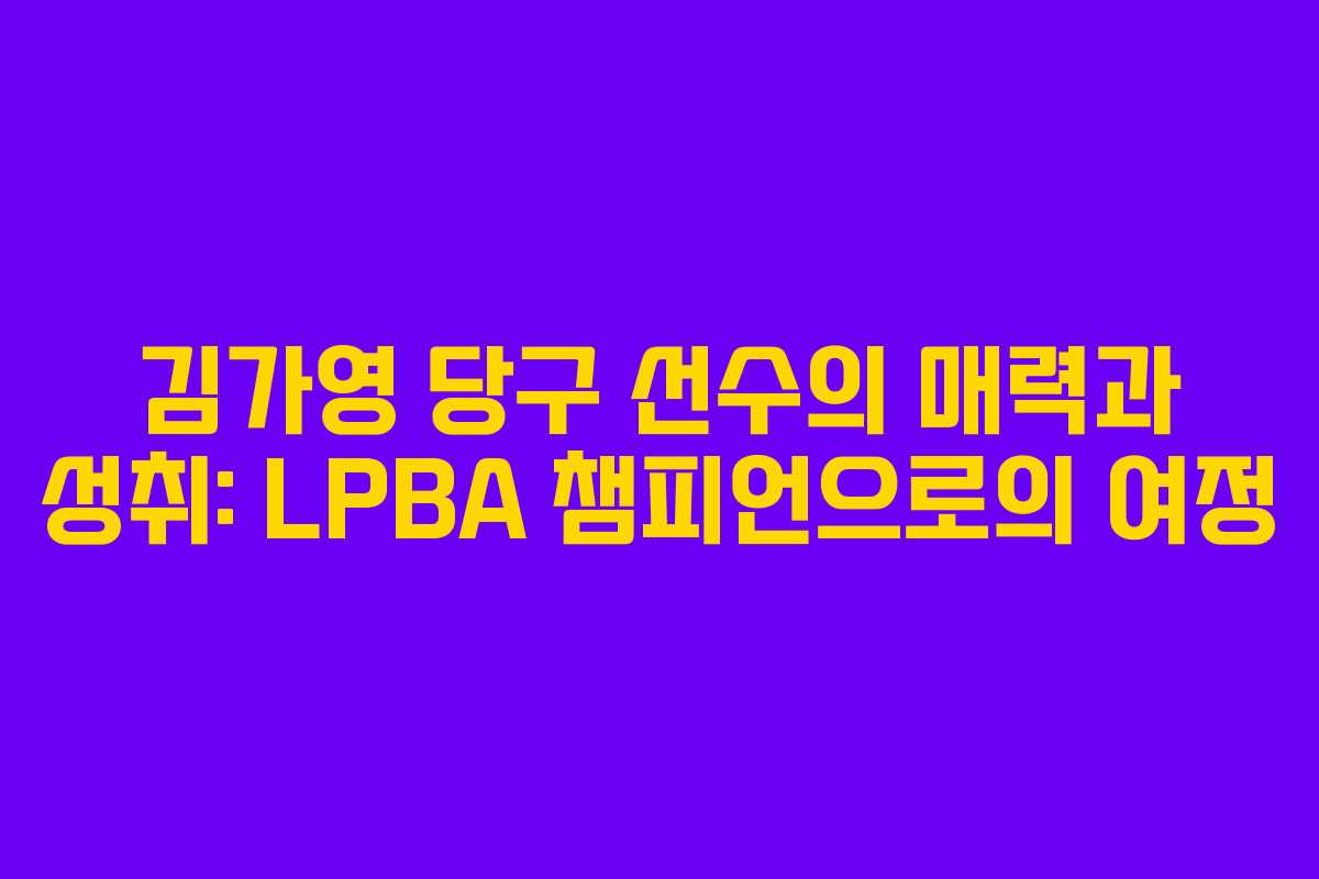 김가영 선수는 LPBA 프로당구에서 두각을 나타내며 많은 이들에게 사랑받고 있는 선수다. 그녀의 경력은 단순한 통계를 넘어, 수많은 이들의 응원과 열정을 담고 있다. 특히 2022년 LPBA 월드챔피언십에서의 성과는 그녀의 경력에 새로운 이정표가 되었다.