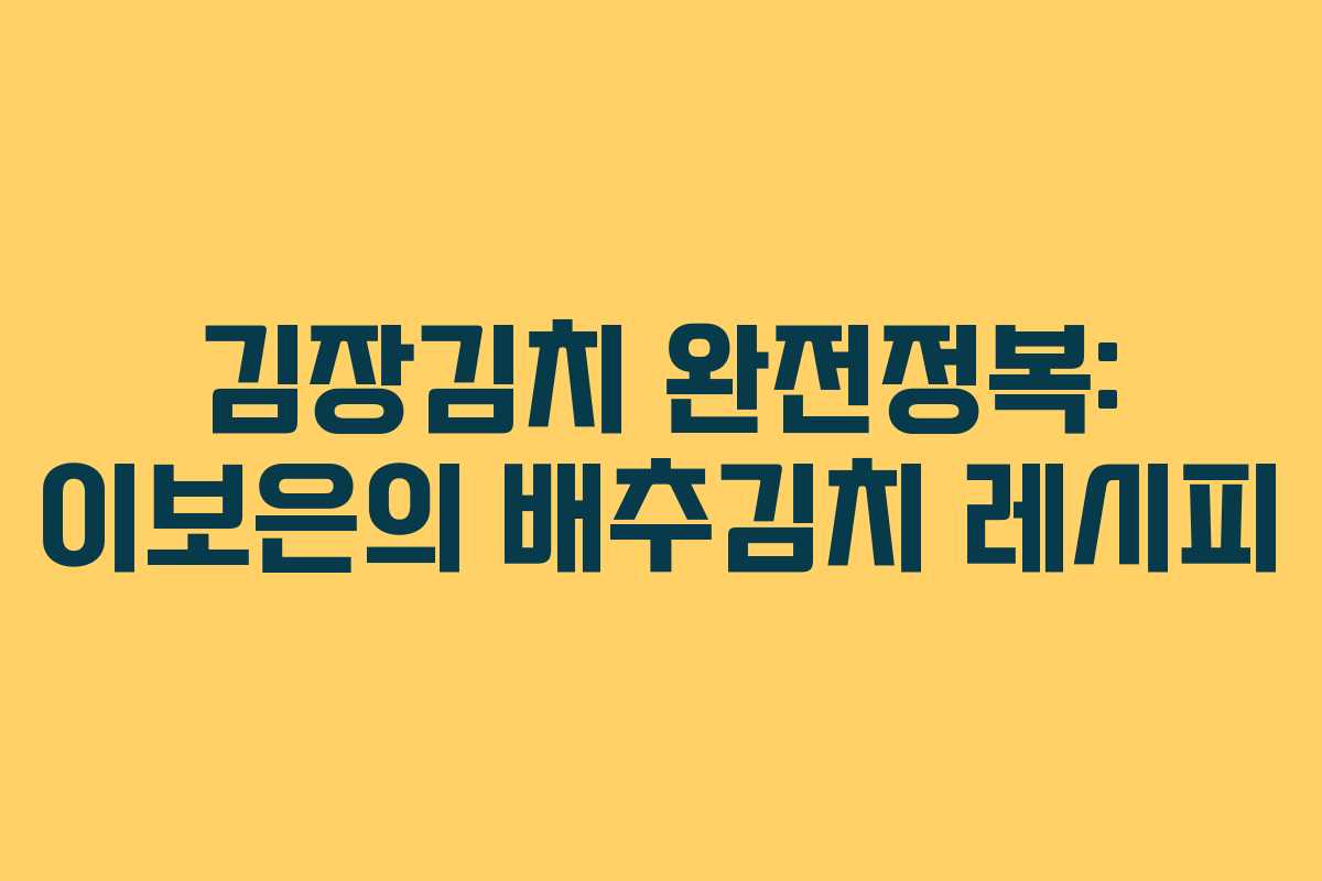 김장김치는 한국의 대표적인 발효 음식으로, 겨울철 필수적인 반찬입니다. 이번 글에서는 요리연구가 이보은의 배추김치 담그는 법과 비법을 소개합니다. 절대 실패 없는 배추김치, 포기김치 담그는 방법을 알아보겠습니다.