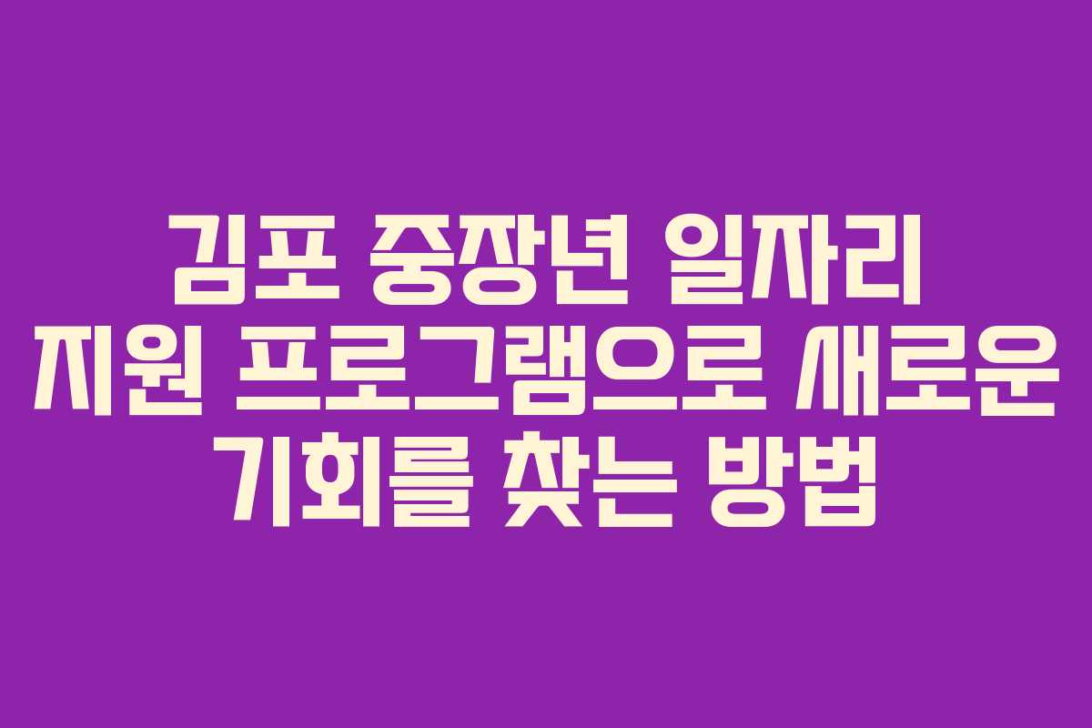 김포시는 중장년층을 위한 다양한 일자리 지원 프로그램을 운영하여 구직자들에게 필요한 정보를 제공하고 있습니다. 이 지원은 경제적 자립을 도모하고 사회 참여를 촉진하는 중요한 역할을 합니다. 중장년층이 새로운 경로를 찾고 경력 전환을 시도할 수 있도록 돕는 이 프로그램을 통해 많은 이들이 기회를 잡을 수 있습니다.