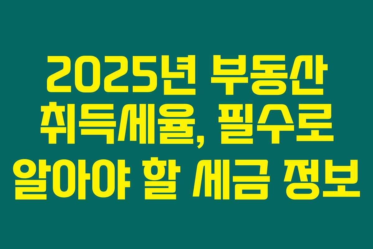 2025년 부동산 취득세와 관련된 정보를 참고로 하여 현명한 투자 및 세무 준비 하시길 바랍니다!