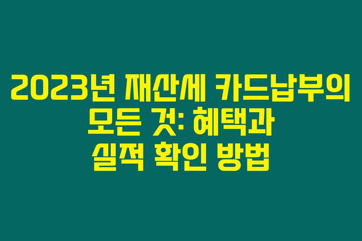 2023년 재산세 카드납부의 모든 것: 혜택과 실적 확인 방법