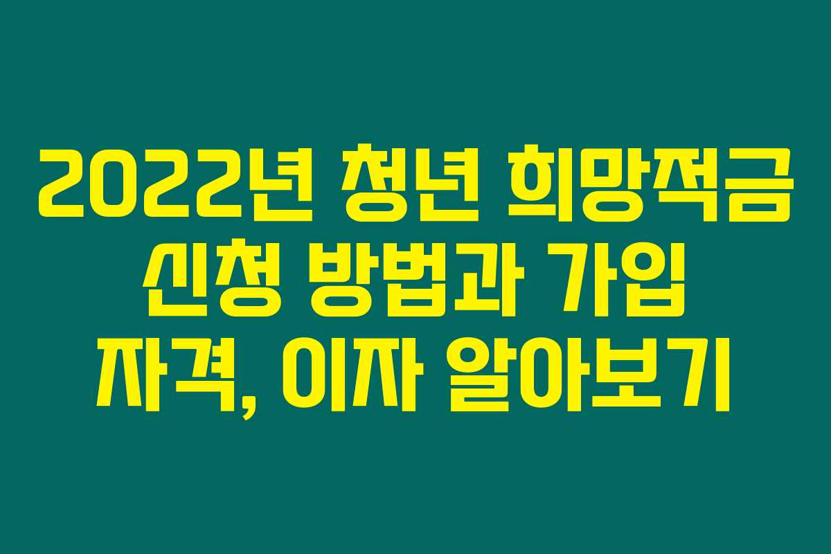 청년들이 미래 자산을 축적할 수 있는 기회, 청년 희망적금에 대해 궁금하신가요? 아래를 읽어보시면 2022년 청년 희망적금을 신청하는 방법, 가입 자격, 그리고 이자 혜택에 대해알려드릴게요. 꼭 필요한 정보가 가득하니 놓치지 마세요!