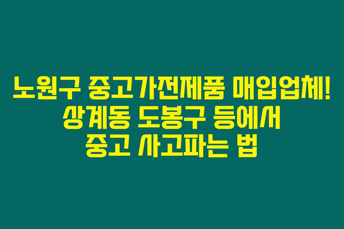 노원구와 도봉구의 다양한 중고 매입업체와 재활용 솔루션을 통해 효율적인 자원 순환을 해보세요. 아래를 읽어보시면 중고가전 거래의 모든 내용을 쉽게 이해하고 해결할 수 있습니다.