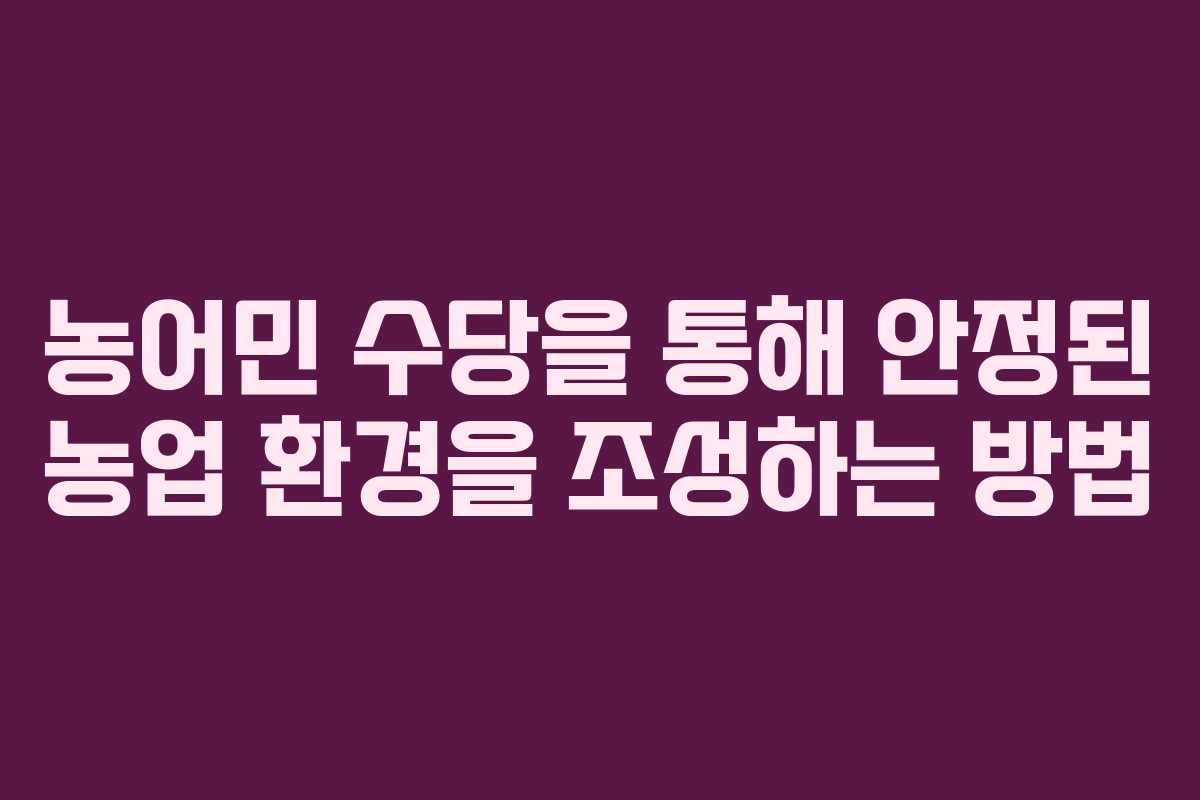 농어민 수당이 시행되기 전, 많은 농민들은 수확량이 적거나 가격이 하락하는 경우 큰 어려움을 겪곤 했다. 이러한 문제를 해결하기 위해 농어민 수당은 정기적인 지원을 통해 안정적인 경영 환경을 조성하고자 한다. 이 제도를 통해 농민들은 심리적 안정감을 느끼며, 보다 나은 품질의 작물을 생산할 수 있는 여유를 갖게 된다.