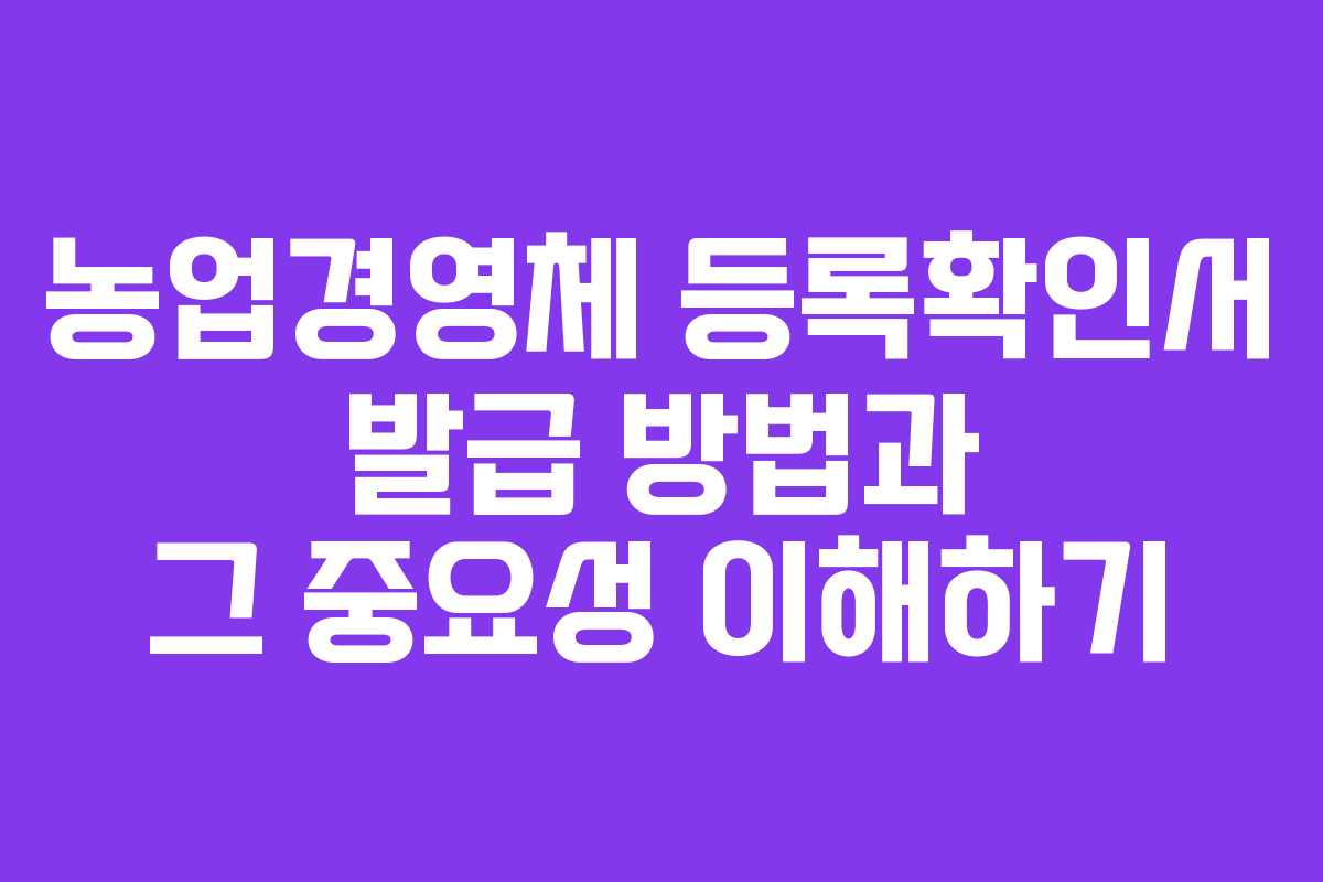 농업경영체 등록확인서는 농업인이 자신의 경영체가 공식적으로 등록되었음을 증명하는 중요한 문서입니다. 이 확인서는 다양한 농업 지원 정책의 혜택을 받기 위해 필수적으로 요구되며, 발급 방법을 숙지하는 것이 매우 중요합니다. 본 문서에서는 농업경영체 등록확인서의 발급 절차와 그 중요성에 대해 상세히 설명하겠습니다.