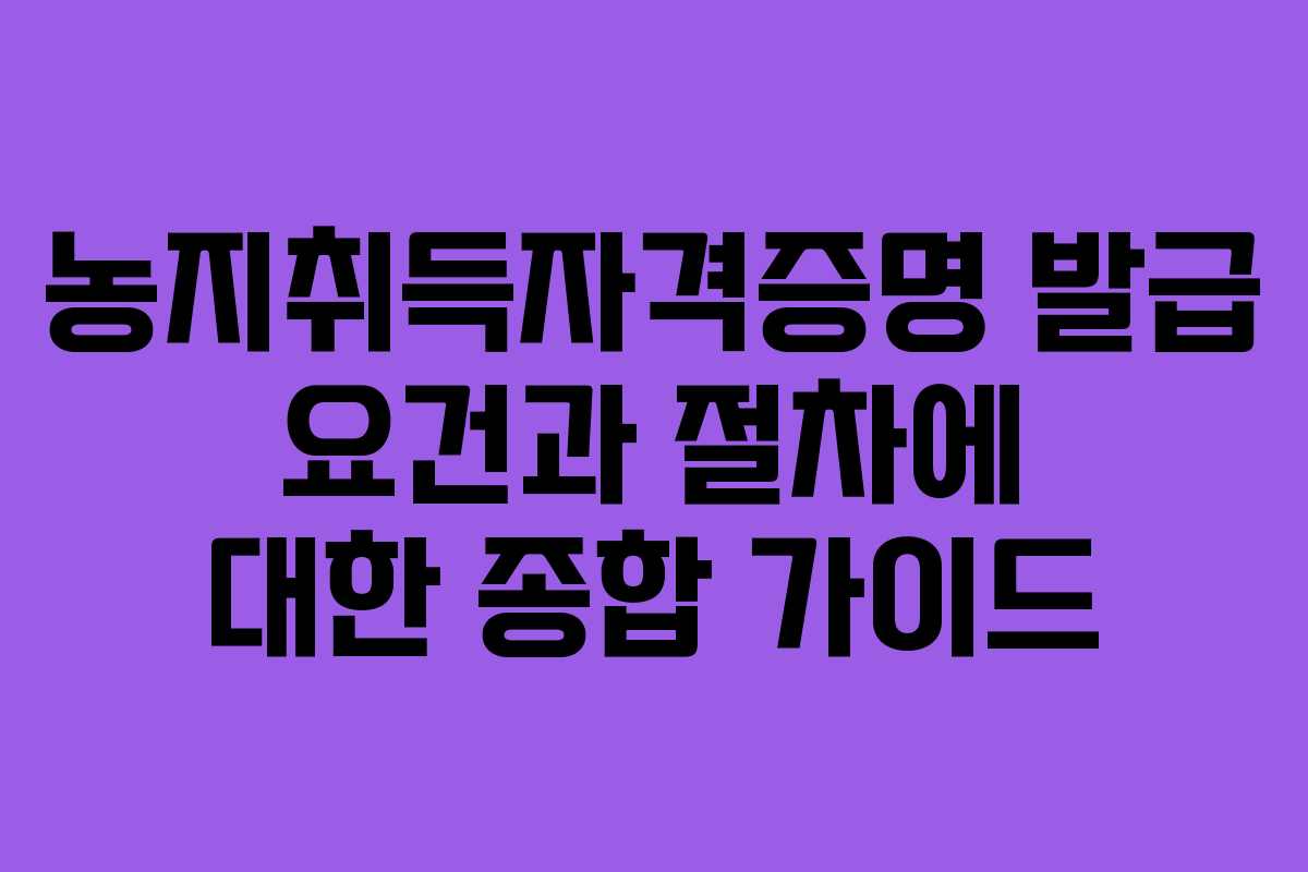 농지를 취득하기 위해서는 농취증을 발급받는 것이 필수적이며, 이를 위해 필요한 요건과 절차를 충분히 이해해야 합니다. 따라서 농지취득자격증명 발급을 위한 모든 단계를 철저히 준비하고, 관련 법령을 숙지하여 농지 소유의 꿈을 이루는 데 최선을 다해야 합니다.