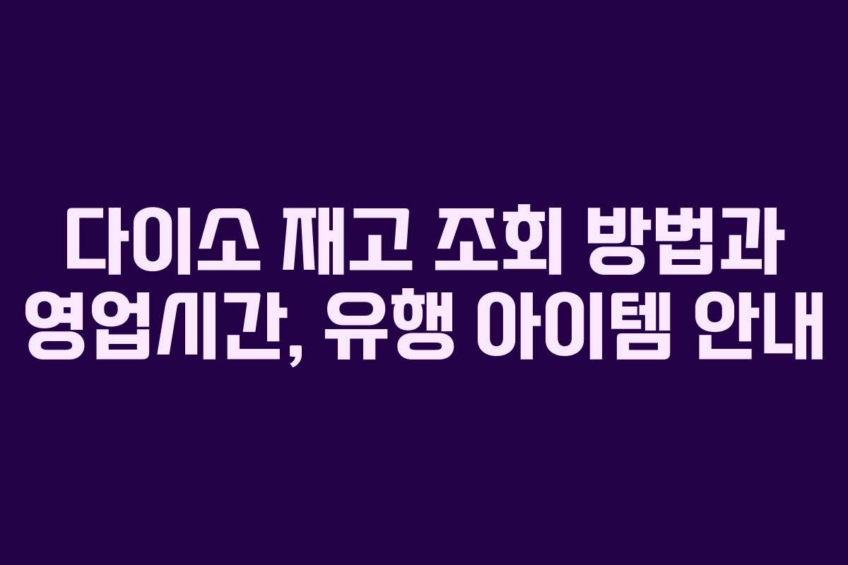 다이소는 저렴한 가격으로 다양한 상품을 제공하는 인기 있는 매장입니다. 하지만 방문하기 전에 필요한 제품이 매장에 있는지 확인하는 것이 중요합니다. 따라서 이번 글에서는 다이소의 재고 조회 방법, 영업시간, 그리고 최근 유행하는 아이템에 대해 알아보겠습니다. 이 정보는 2026년 기준으로 업데이트된 내용입니다.