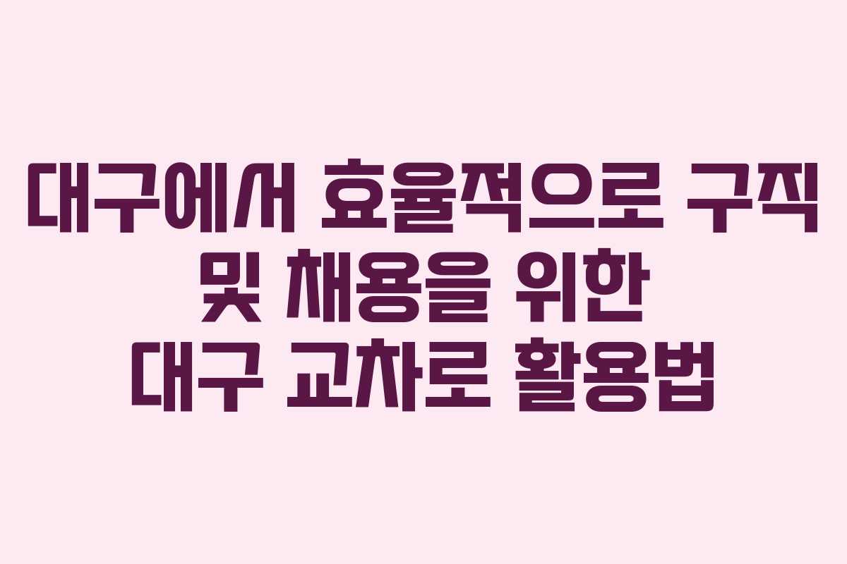 보다 정밀한 검증이 필요할 경우, 구직자는 대구 교차로의 상세 공고 페이지를 통해 모집 조건과 기업 정보를 면밀히 검토할 수 있습니다. 공고의 급여, 근무조건, 기업의 위치 등을 비교 분석하여 최적의 선택을 할 수 있도록 합니다. {asof_date} 기준으로, 전화나 이메일을 통한 문의를 통해 추가 정보를 확인하는 것도 유용합니다. 또한, 다양한 업종과 근무 형태가 제공되기 때문에 다각적으로 검토할 수 있는 기회를 가집니다.