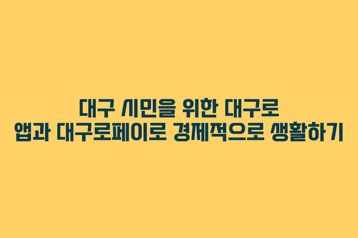 대구 시민을 위한 대구로 앱과 대구로페이로 경제적으로 생활하기