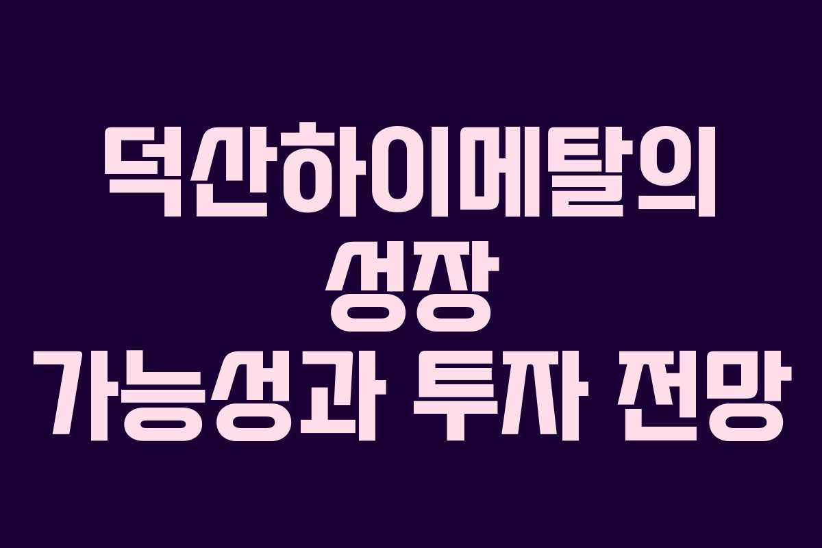 AI 기술의 발전과 반도체 시장의 성장에 따라 덕산하이메탈의 주가는 상승할 가능성이 높습니다. 특히 HBM 시장의 지속적인 확대가 매출 증가로 이어질 것으로 예상됩니다.