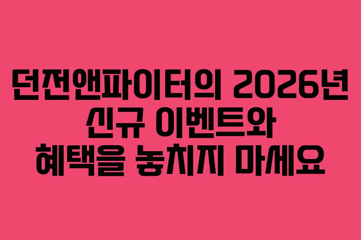 2026년은 던전앤파이터(던파)에서 새로운 이벤트와 혜택으로 가득 찬 해가 될 것으로 보입니다. 다양한 이벤트가 진행되며, 플레이어들에게는 특별한 보상들이 기다리고 있습니다. 이번 글에서는 최근 진행 중인 이벤트와 그에 따른 보상, 그리고 플레이어들이 주의해야 할 사항들을 정리해보겠습니다.