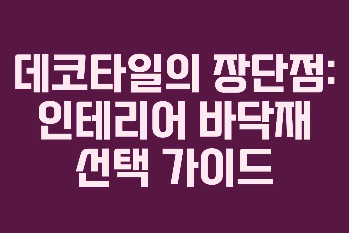 데코타일은 저렴한 비용과 뛰어난 내구성으로 인기를 끌고 있지만, 보행감과 변형 문제에 대한 단점을 고려해야 합니다. 바닥재 선택 시 이러한 요소들을 잘 따져보시기 바랍니다.