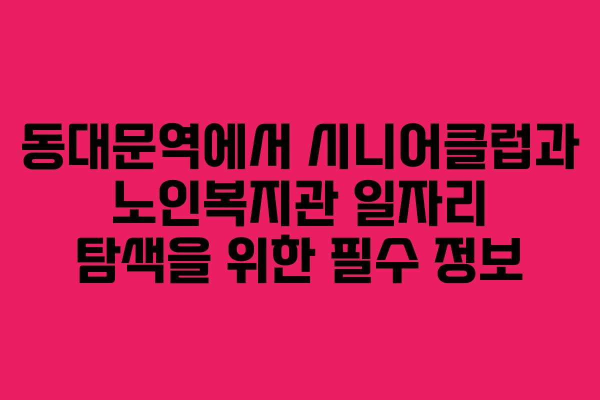 동대문역 근처에서 일자리를 찾는 것은 다양한 방법으로 가능하다. 특히 시니어클럽과 노인복지관에서 제공하는 채용정보는 지역 사회에 기여할 수 있는 기회를 제공한다. 이 글에서는 동대문역에서 유용한 채용정보와 지원 방법을 소개한다.