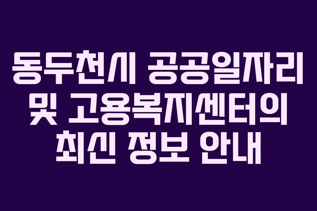 동두천시는 고용복지센터와 시청 홈페이지를 통해 공공일자리와 민간기업의 채용정보를 제공합니다. 다양한 채용공고가 수시로 업데이트되니, 정기적으로 확인하는 것이 좋습니다.