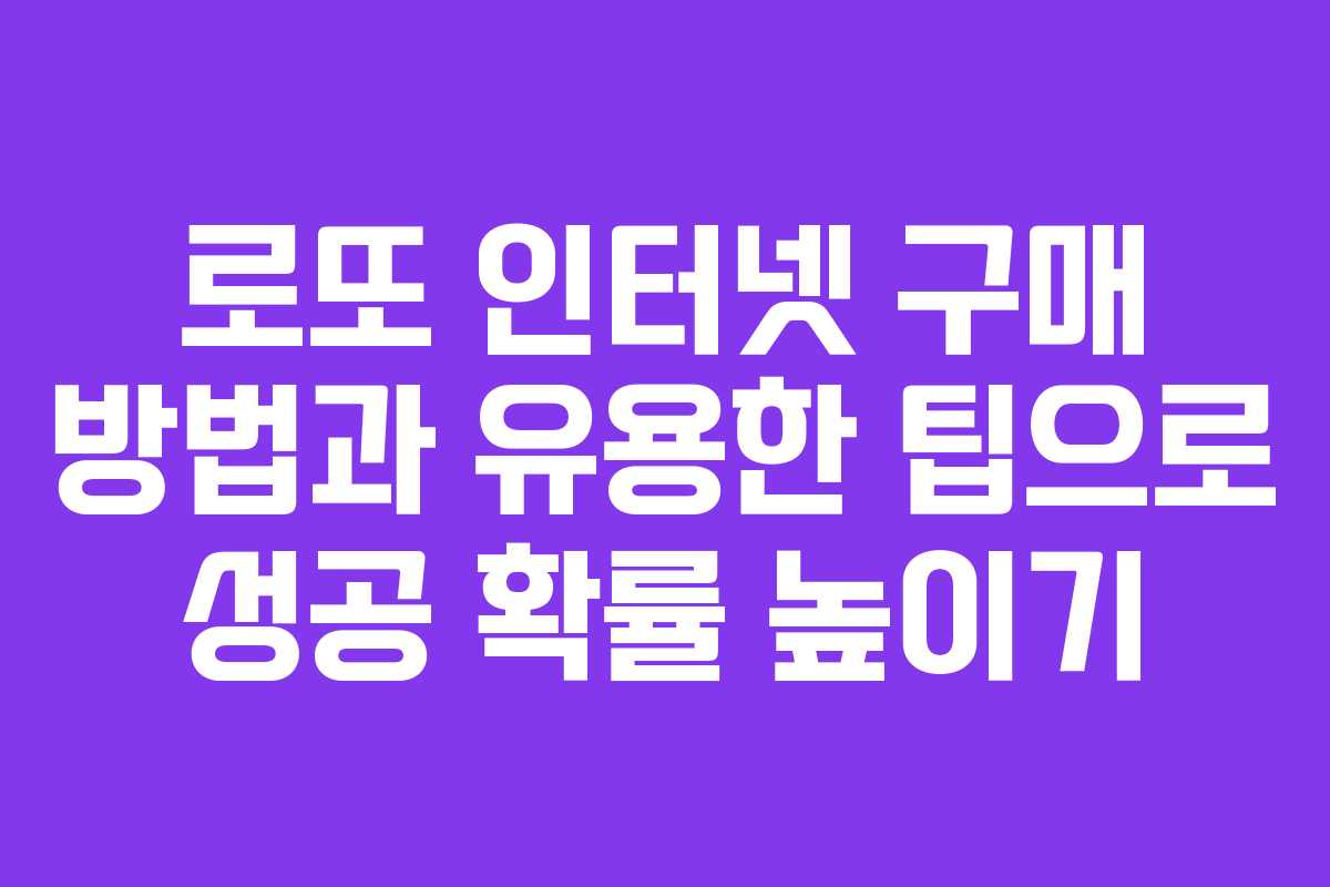 로또는 많은 이들에게 인생을 변화시킬 수 있는 기회를 제공합니다. 하지만 오프라인 판매점에 가기 힘든 상황이 생길 수 있습니다. 이럴 때 온라인 구매는 매우 유용한 대안이 됩니다. 이번 글에서는 로또를 인터넷으로 구매하는 방법과 이를 더욱 효과적으로 활용할 수 있는 몇 가지 팁을 소개합니다.